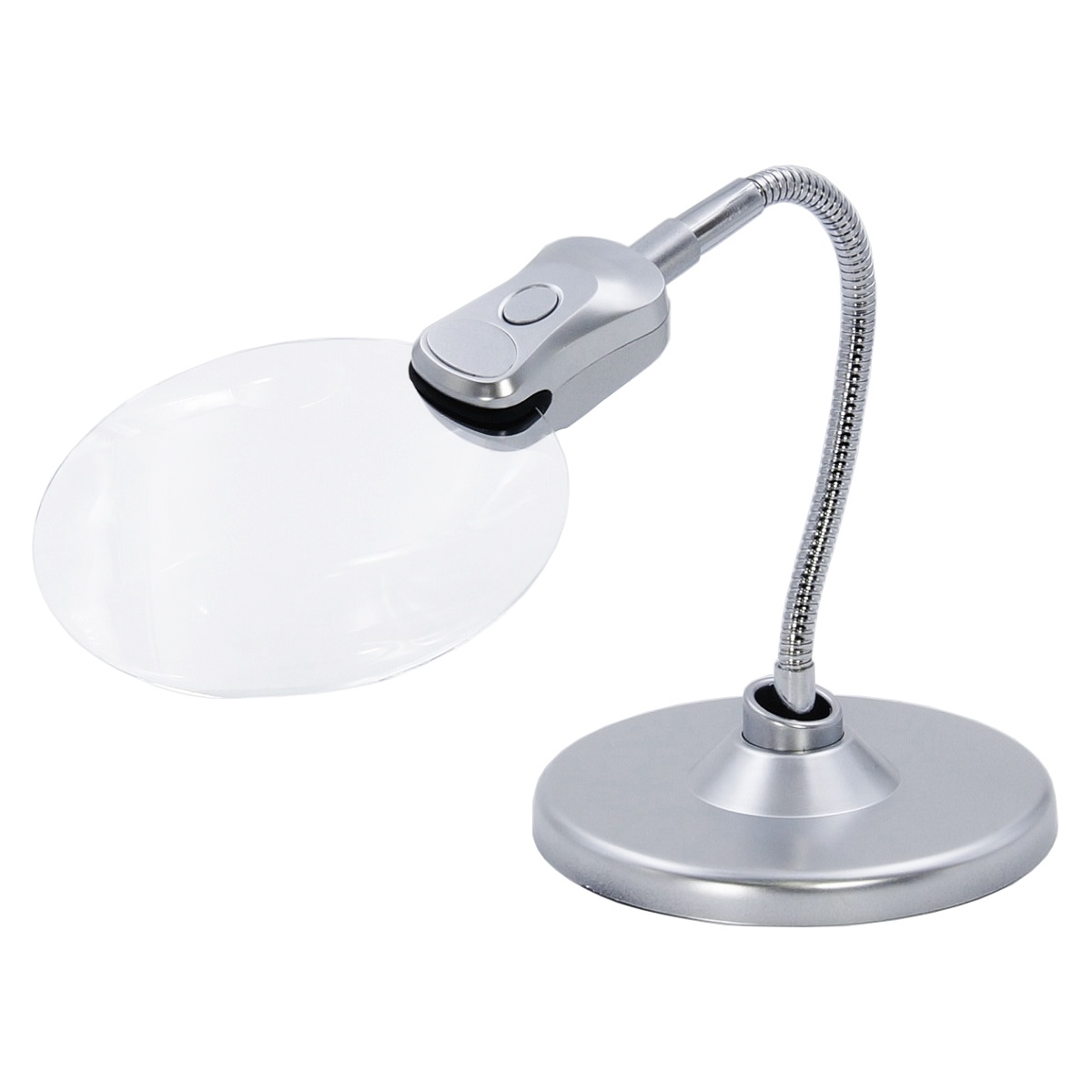 Лупа подвійна на гнучкій нозі з підставкою MG5B-4 з LED-підсвічуванням (велика лупа d=107 мм, 2x; мала лупа d=24 мм, 6x)