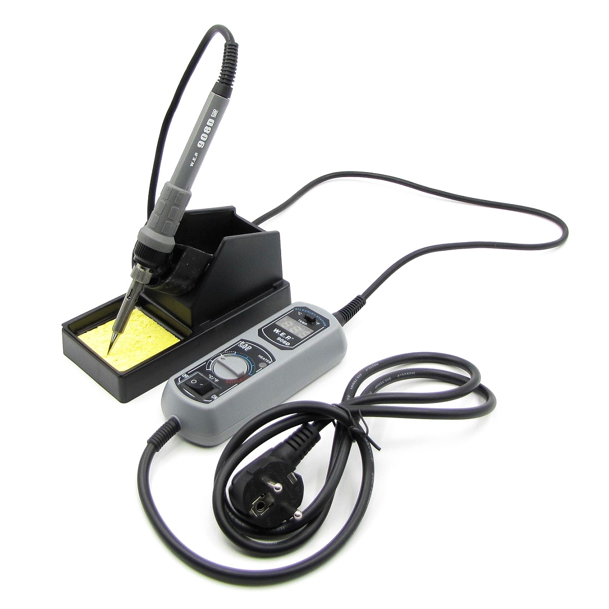 Паяльник з портативним блоком управління WEP 908D з підставкою (65W, цифрова індикація, аналогове регулювання t 200-480 гр C, жало 900M)