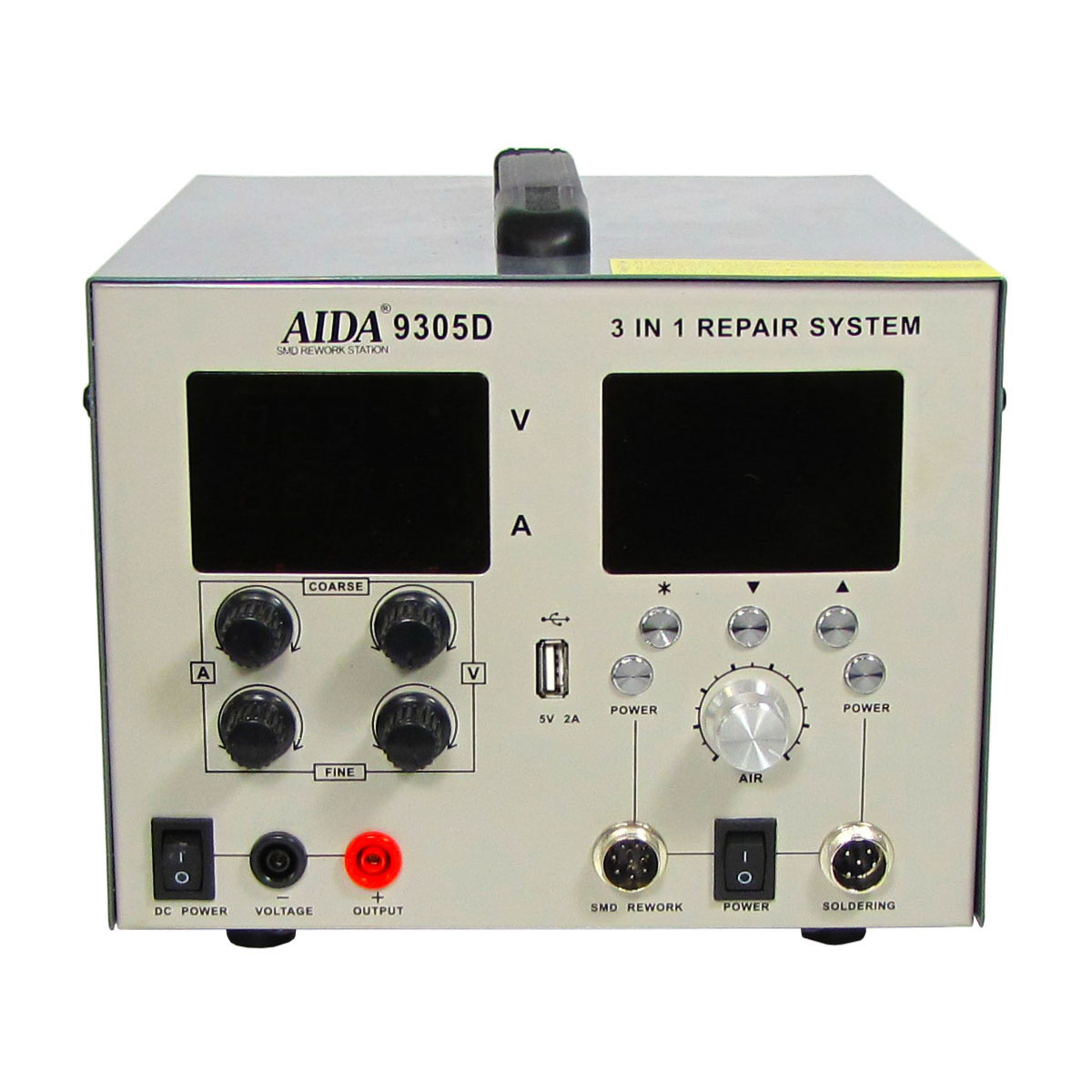 Паяльна станція Aida 9305D фен, паяльник, блок живлення 30V 4.5A, USB A 5V 2A, цифрова індикація