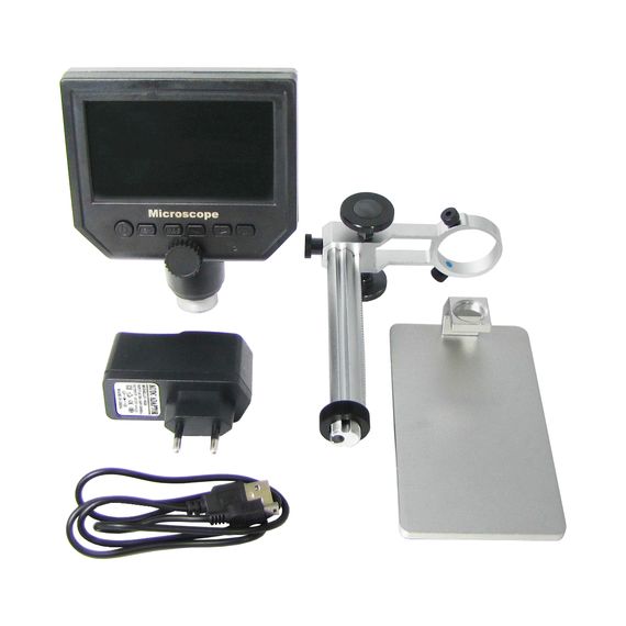 Мікроскоп цифровий з монітором 4.3" та штативом G600+ (запис відео та фото на microSD (16gb class 10), фокус 20-120 мм, кратність збільшення 600X)