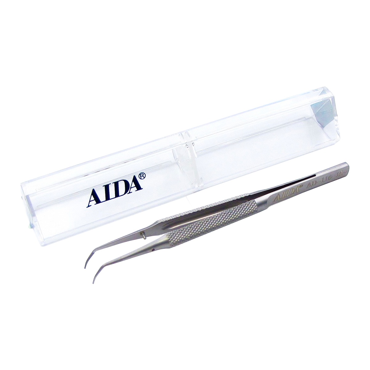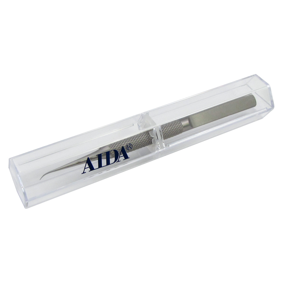 Пінцет у футлярі вигнутий Aida AD-116-15, титановий з рифленими ручками