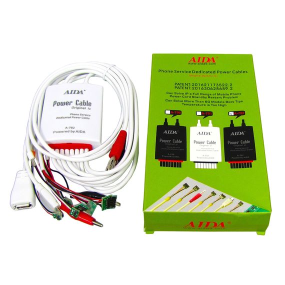 Кабелі для блоків живлення Aida A-702 з роз'ємами для підключення плат iPhone 4G/4S/5G/5S/6G/6P/S/7, micro USB, USB-A, крокодили