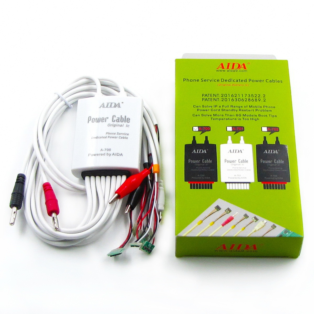 Кабелі для блоків живлення Aida A-700 з роз'ємами для підключення плат iPhone 4/4S/5/5S/SE /6/6S/6P/6SP, micro USB, крокодили