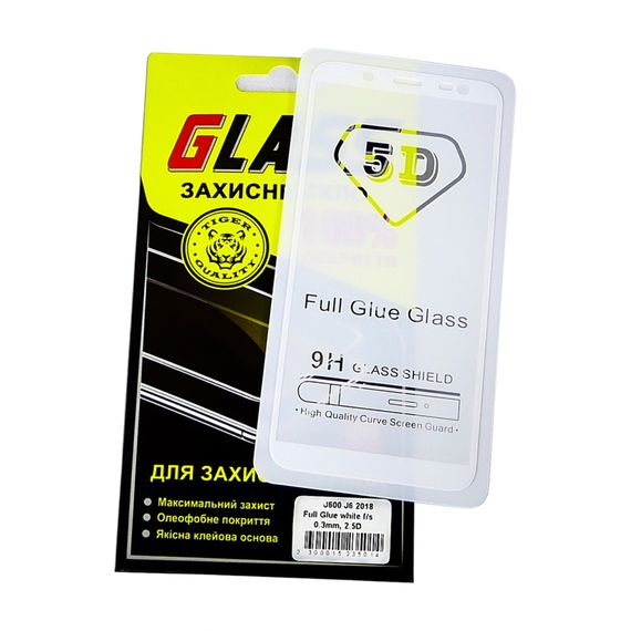 Захисне скло для Samsung A600 Galaxy A6 (2018)/ J600 Galaxy J6 (2018) Full Glue (0.3 мм, 2.5D, білий)