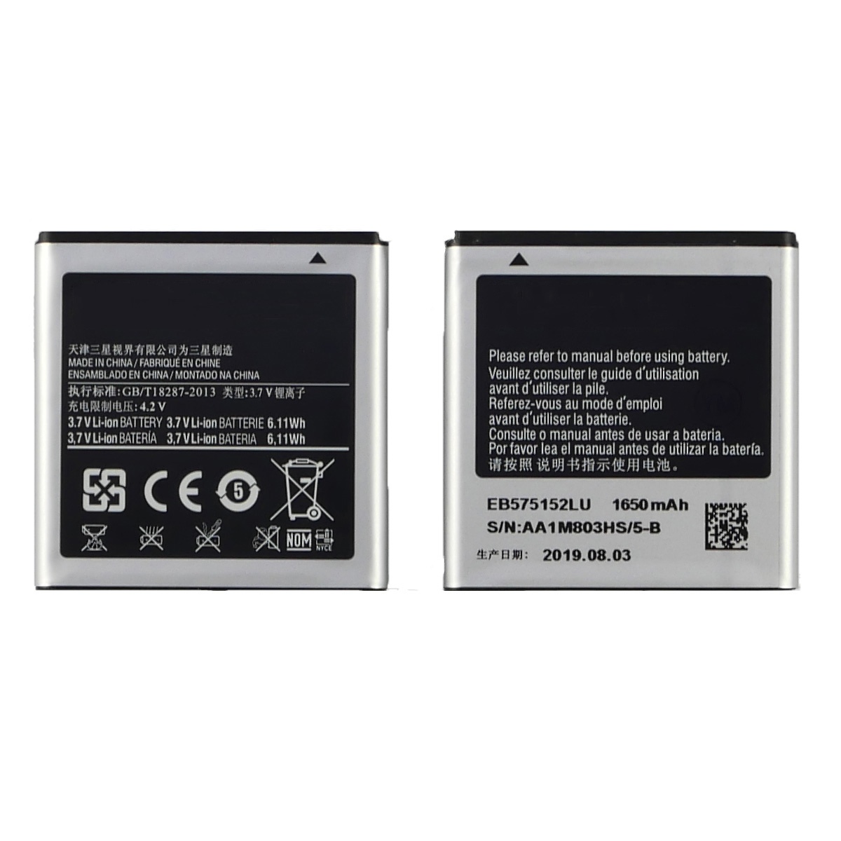 Акумулятор для Samsung i9000/ i9001 Galaxy S Plus/ i9003 Galaxy SL/ i897/ EB575152LU Li-ion, 3.7 V, 1650 mAh оригінал TW