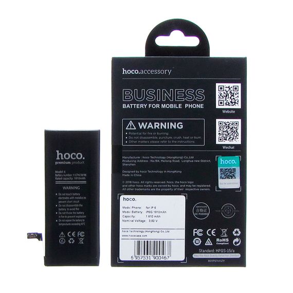 Акумулятор Hoco для Apple iPhone 6 - це високоякісна батарея, яка спроектована для заміни старого або пошкодженого акумулятора у Вашому смартфоні. Вона забезпечує необхідне живлення Вашого пристрою, дозволяючи йому працювати довгий час без підзарядки. Акумулятор Hoco - це надійне джерело енергії для Вашого смартфона.
