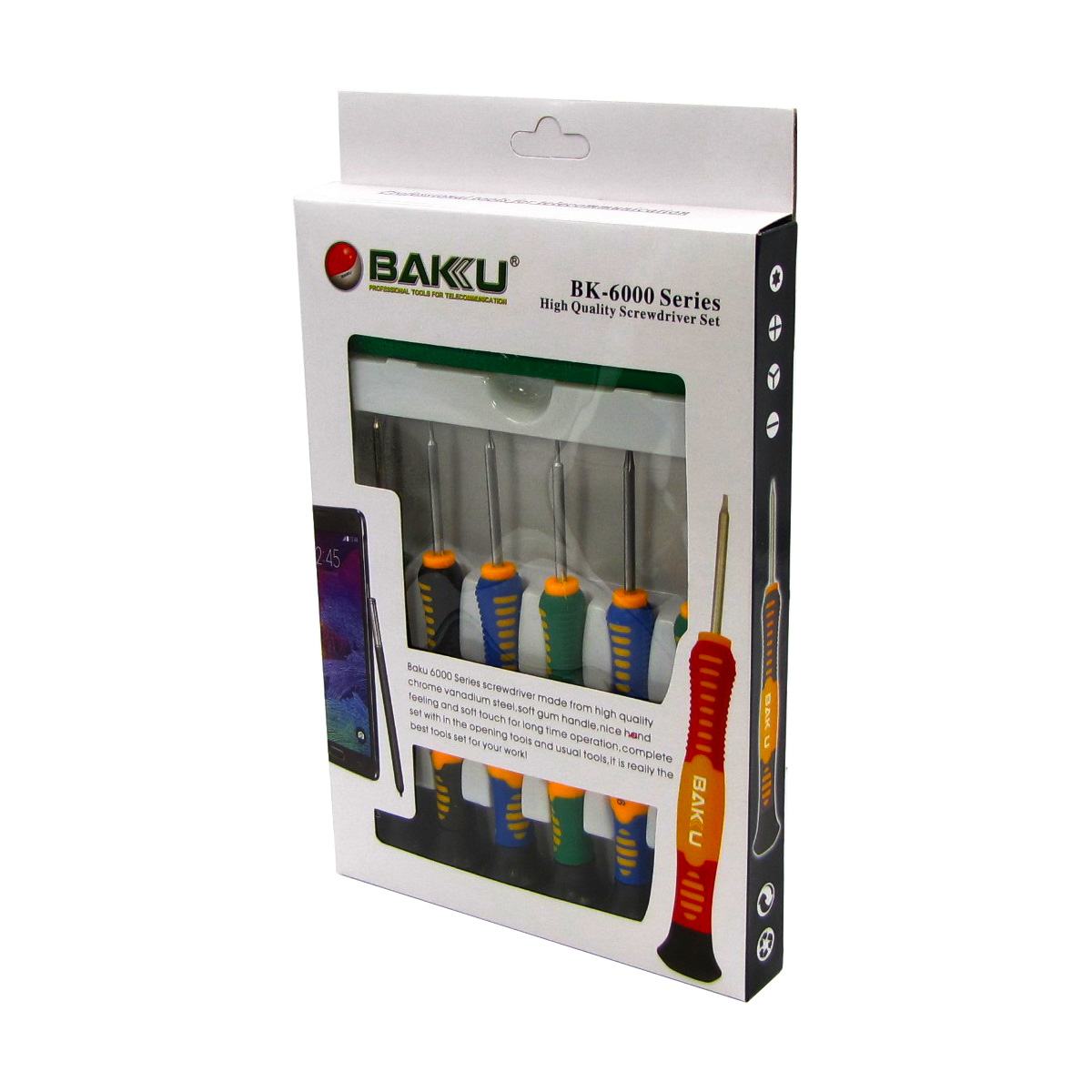 Набір інструментів Baku BK-6000-E/BK-6001 (викрутки:T2,T3,T5,T6, зірка 0.8, хрест 1.2, 2-стор. пласт. лопатка, скальпель)