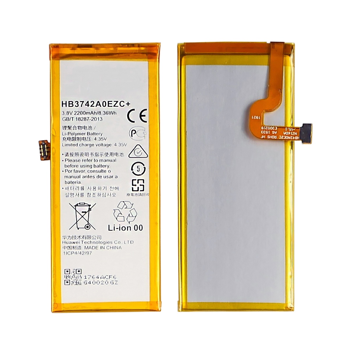 Акумулятор для Huawei P8 Lite (ALE L21)/ Y3 (2017)/ HB3742A0EZC+ (Li-Polymer 3.8 В 2200 мАч) оригінал TW