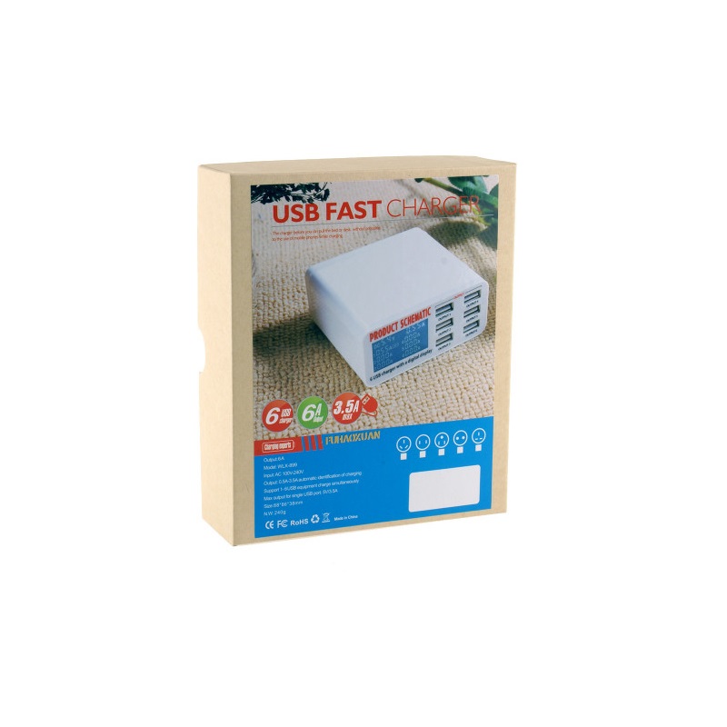 Зарядний пристрій Quick Charge 2.0 WLX-899 6 USB портів, автоматична ідентифікація заряджання (5v, 6A MAX, 30W)