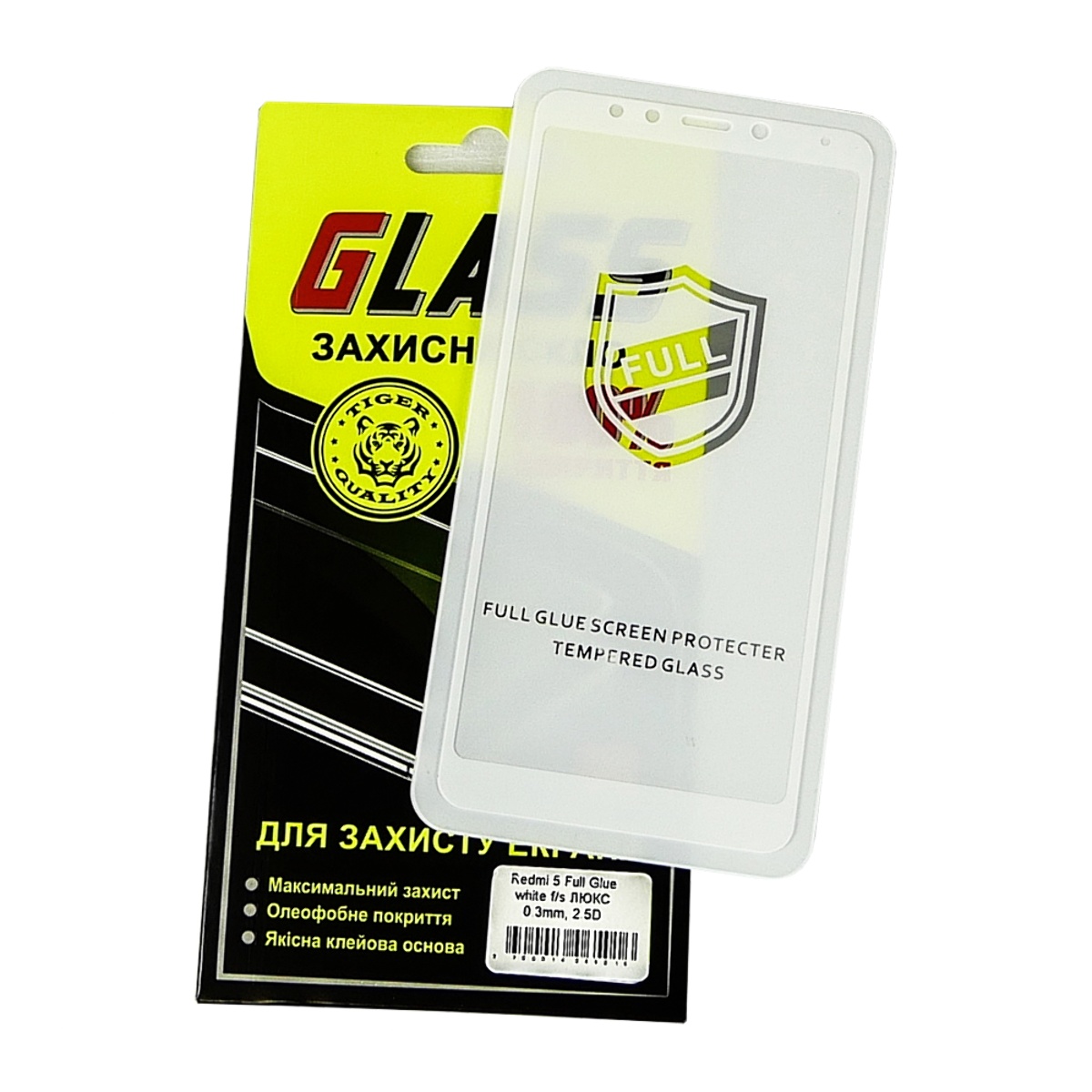 Захисне скло для Xiaomi Redmi 5 Full Glue (0.25 мм, 2.5D, білий) Люкс