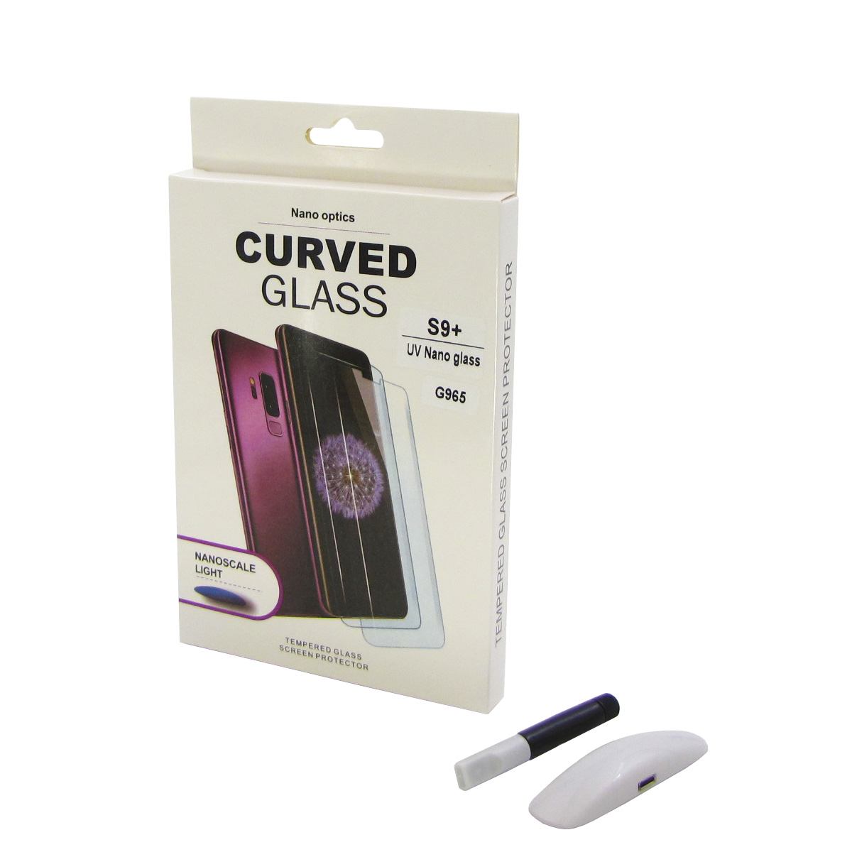 Захисне скло UV для Samsung G965 Galaxy S9 Plus (0.25 мм, 3D, прозоре) у комплекті з UV клеєм та лампою