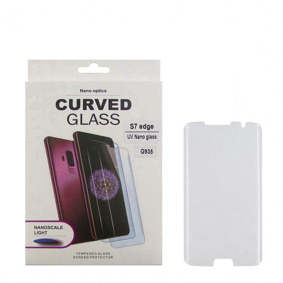 Захисне скло UV для Samsung G935 Galaxy S7 Edge (0.25 мм, 3D, прозоре) у комплекті з UV клеєм та лампою