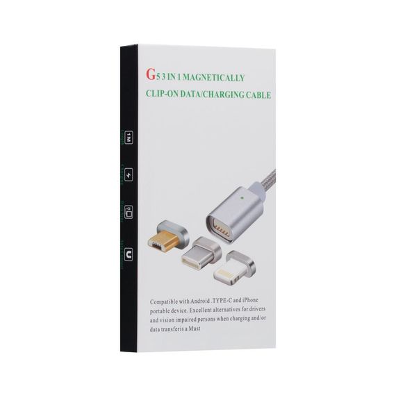 Кабель 3in1 MAGNETIC G5 CLIP-ON (1м, сталевий, магнітний)