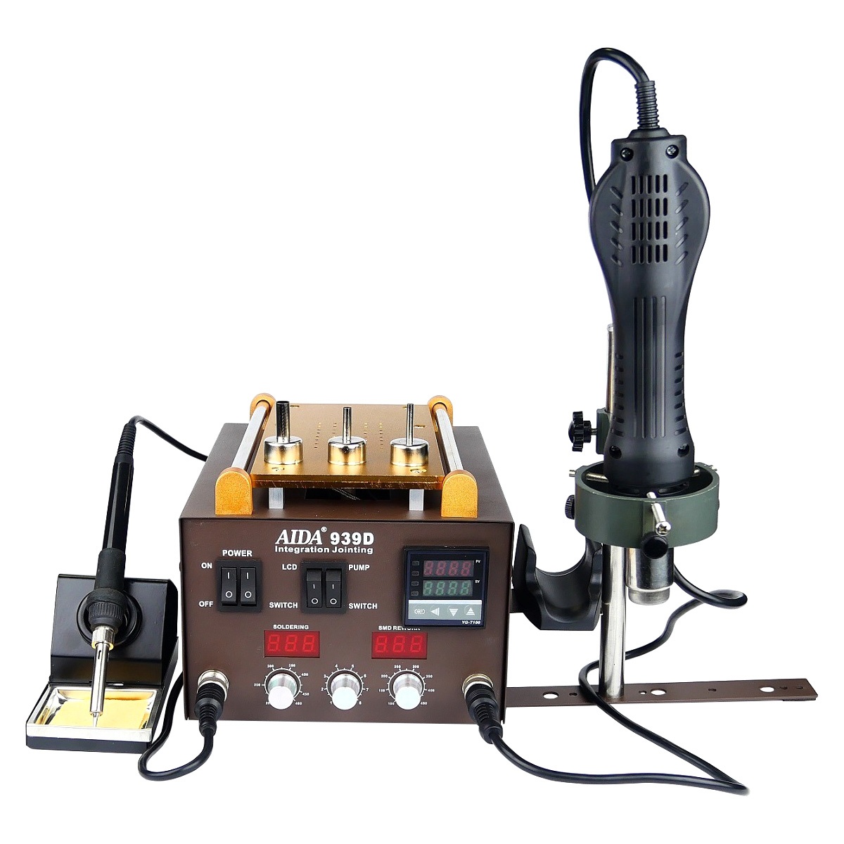 Паяльна станція Aida 939D із вбудованим вакуумним сепаратором 9" (20 x 11 см), фен, паяльник, третя рука