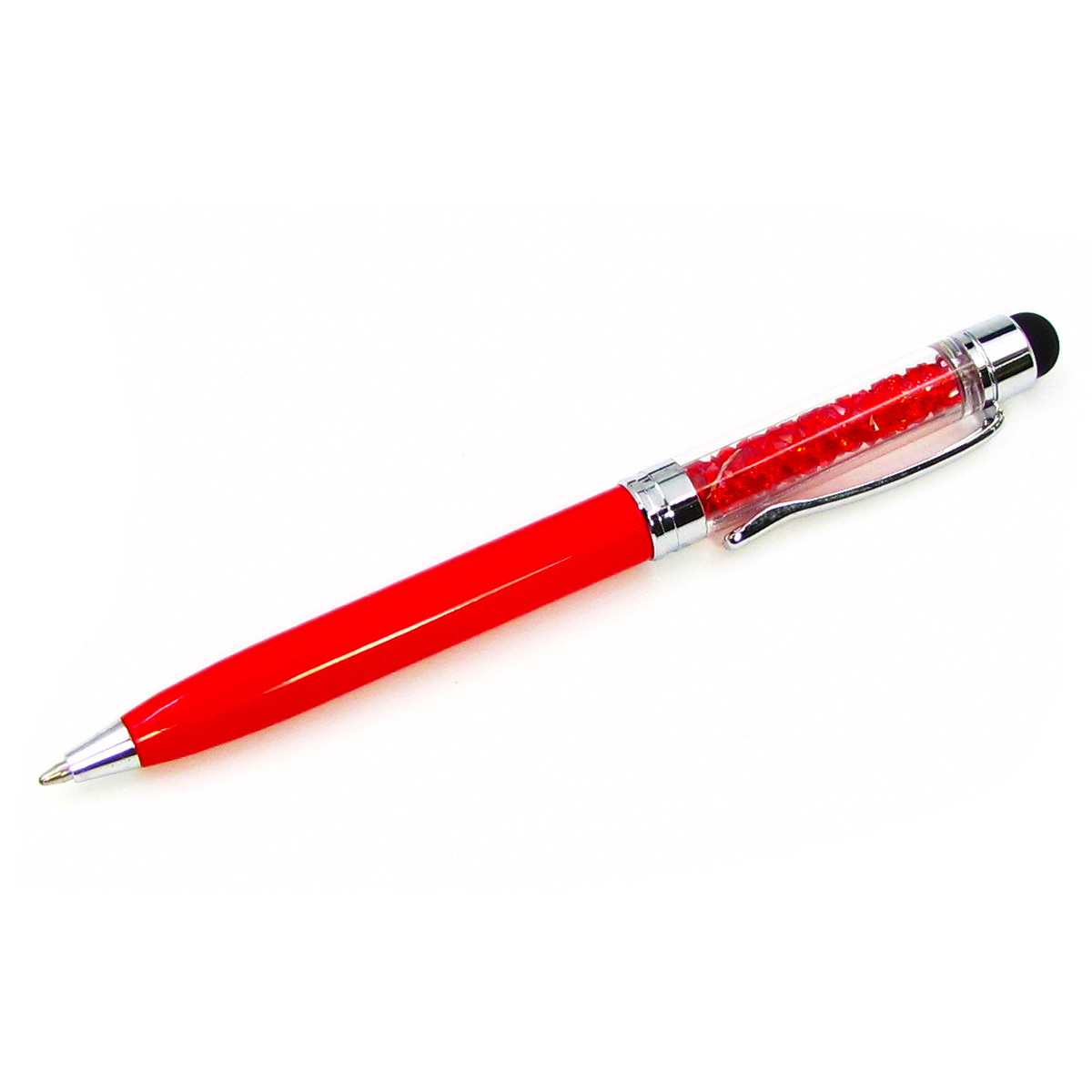 Стілус ємнісний, з кульковою ручкою, металевий, червоний з червоними кристалами