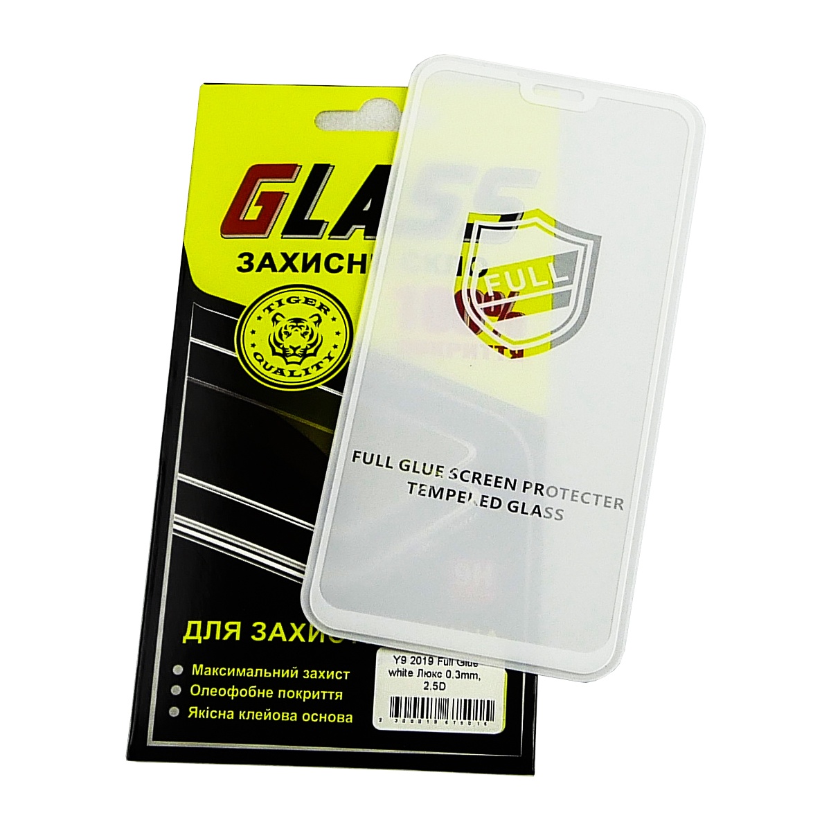 Захисне скло для Huawei Y9 2019 Full Glue (0.25 мм, 2.5D, білий) Люкс