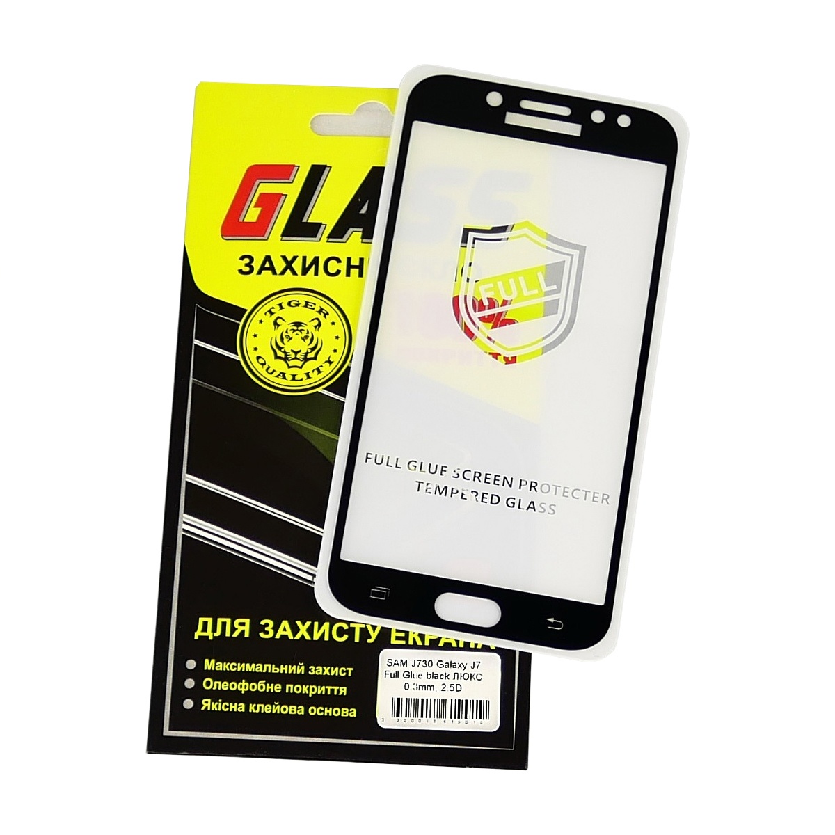 Захисне скло для Samsung J730 Galaxy J7 (2017) Full Glue (0.25 мм, 2.5D, чорний) Люкс