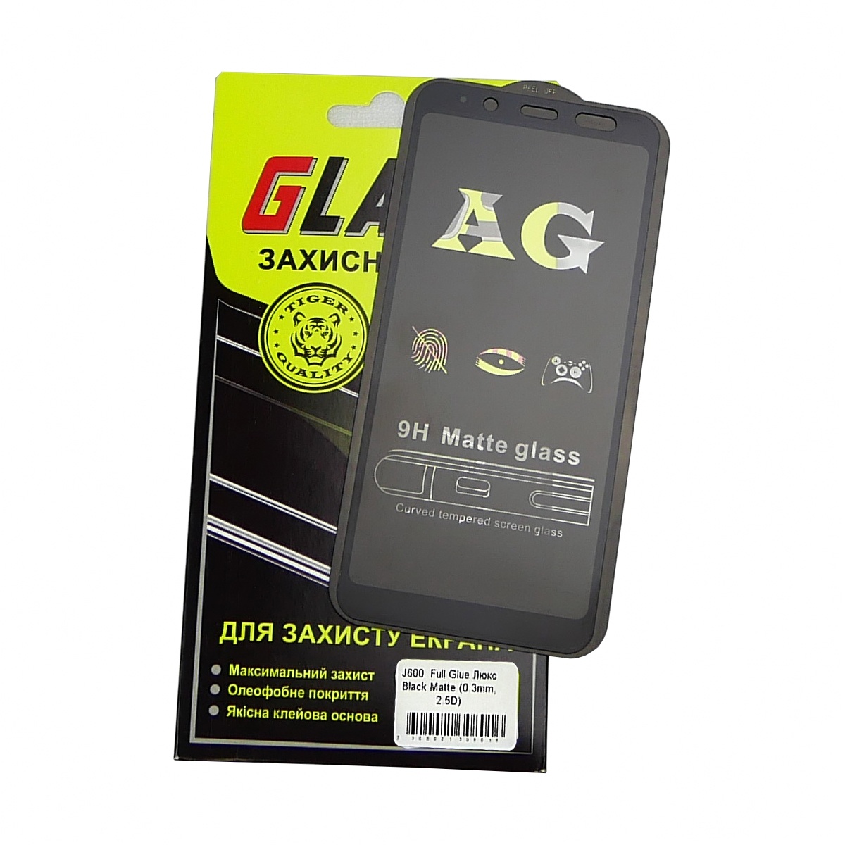 Захисне скло для Samsung A600 Galaxy A6 (2018)/ J600 Galaxy J6 (2018) Full Glue (0.3 мм, 2.5D, матове чорний) Люкс