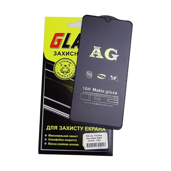 Захисне скло для Huawei P30 Lite (New Edition) Full Glue (0.3 мм, 2.5D, матове чорний) Люкс