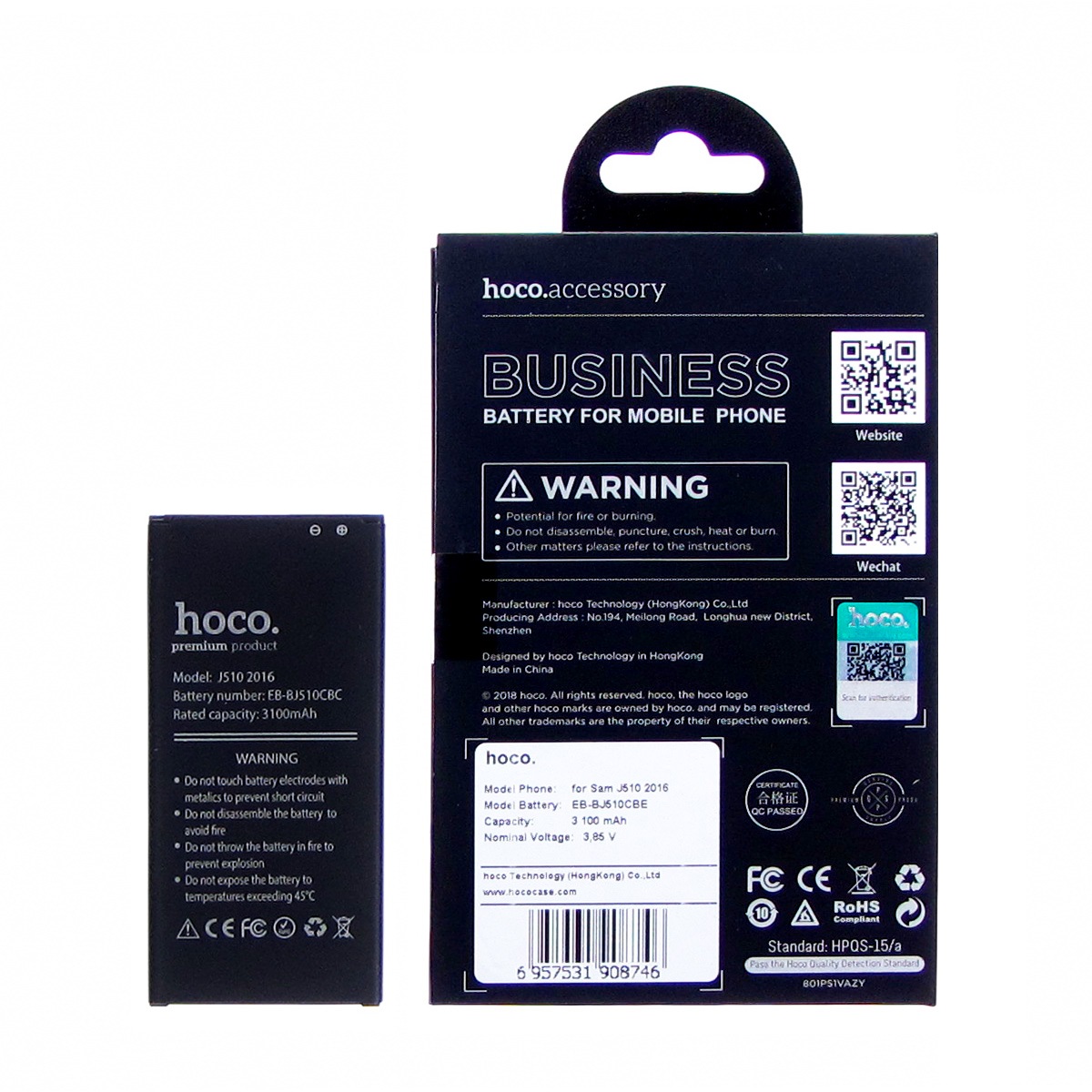 Акумулятор Hoco для Samsung J510 Galaxy J5 2016/ EB-BJ510CBC (Li-ion, 3.85 V, 3100 mAh) - це високоякісна батарея, яка спроектована для заміни старого або пошкодженого акумулятора у Вашому смартфоні. Вона забезпечує необхідне живлення Вашого пристрою, дозволяючи йому працювати довгий час без підзарядки. Акумулятор Hoco - це надійне джерело енергії для Вашого смартфона.