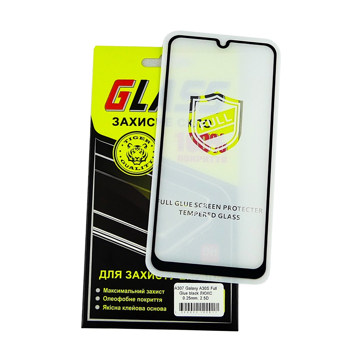 Захисне скло для Samsung A30s/A20/A30/A30s/A40s/A50/A50s/M30/M30s/M40s/M10s/M21/M31/M21s Full Glue (0.25 мм, 2.5D, чорний) Люкс