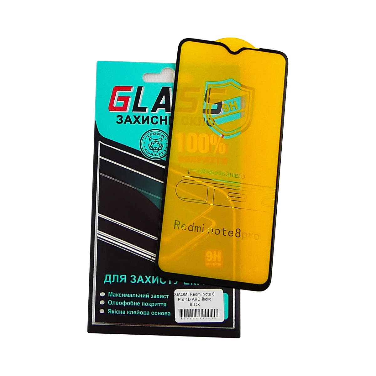 Захисне скло для Xiaomi Redmi Note 8 Pro (0.3 мм, 4D ARC чорний) Люкс