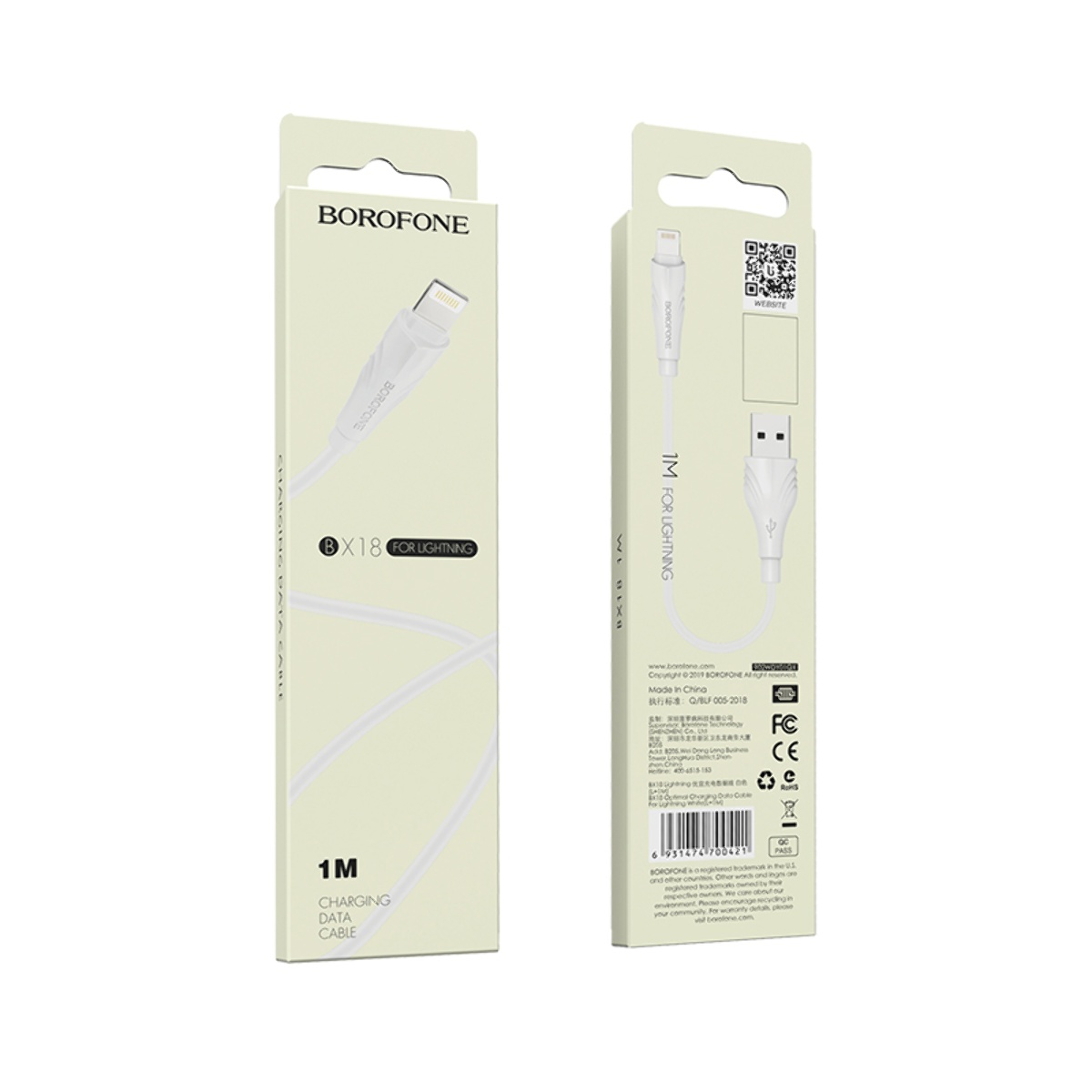 Кабель USB Borofone для Apple BX18 Lightning (2м, білий)