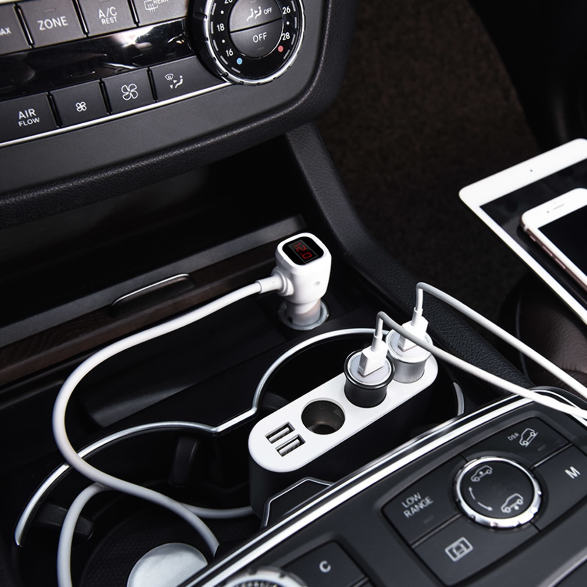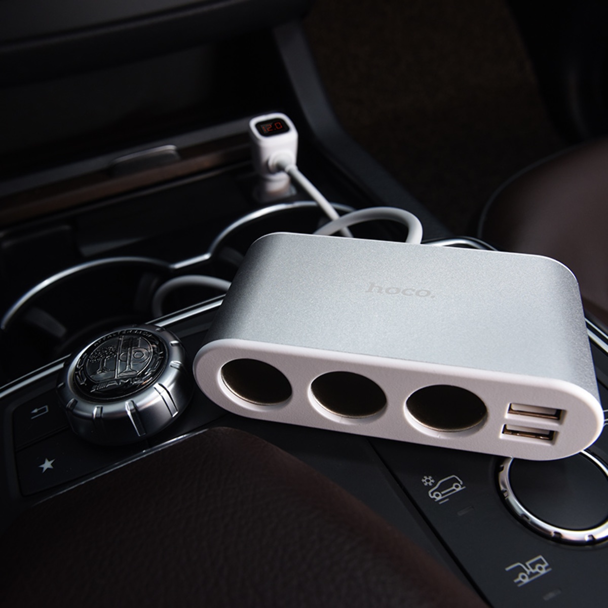 Автомобільний зарядний пристрій 2 USB та 3 роз'єми АЗУ HOCO Z13 LCD 2.1A стальний