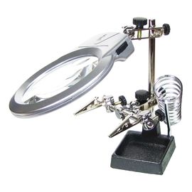 Утримувач плат та паяльника MG16129-B з подвійною лупою (велика лупа d=125 мм, 2.5x; мала лупа d=26 мм, 5x)
