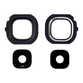 Скло камери для Samsung J710 Galaxy J7 (2016) чорний з сріблястою рамкою