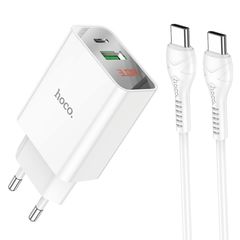 Сетевое зарядное устройство Hoco C100A PD 20W + QC3.0 Type-C белое + кабель Type-C to Type-C