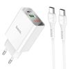 Сетевое зарядное устройство Hoco C100A PD 20W + QC3.0 Type-C белое + кабель Type-C to Type-C